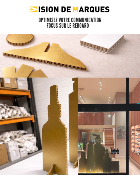 Chez Vision de Marques, nous utilisons le reboard pour concevoir et produire des installations durables, adaptées à chaque univers de marque, alliant créativité, précision et responsabilité.